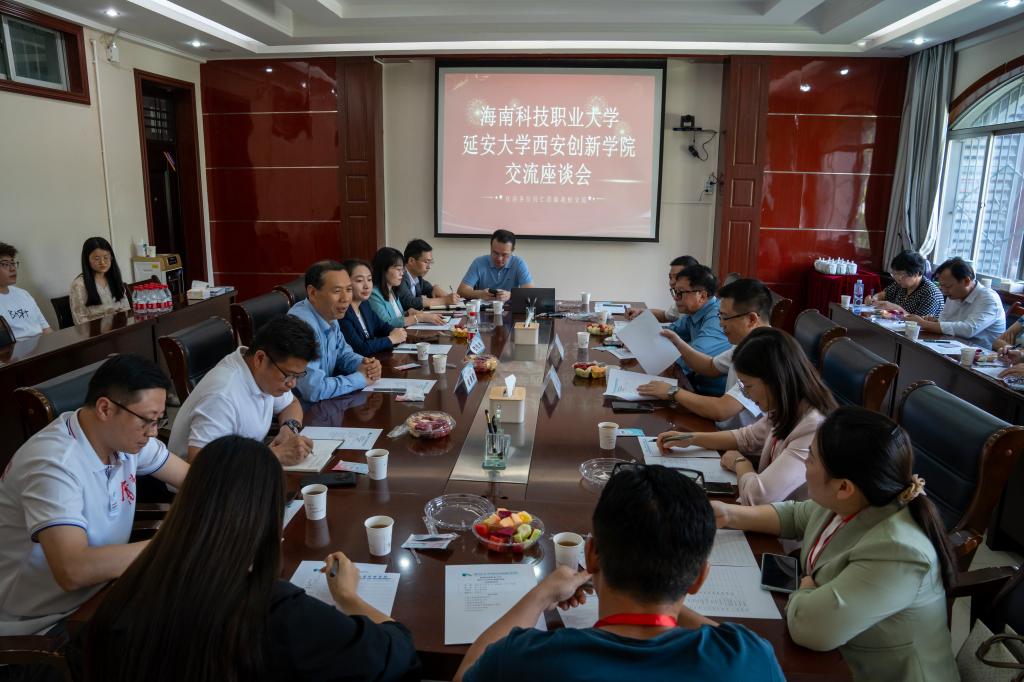 4月25日下午,海南科技职业大学执行董事长郑兵一行30人莅临公司考察并开展交流座谈。公司董事长崔海潮、执行董事长贺俊波、副董事长拓欣及相关部门负责人陪同考察。