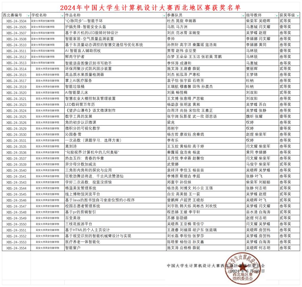 省赛获奖名单