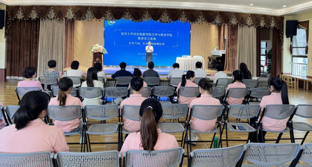 本网讯 万物竞绿仲夏美,生机勃发共建情。为拓宽公司学前教育专业员工实习、就业途径,6月12日,公司副董事长拓欣、文学与教育公司副经理杨惠栋、杨明权、张丹等一行赴长安区第六幼儿园、第九幼儿园参加实习基地挂牌仪式,携手共建公司产品实习基地,长安区教育局副局长张济帆等参加了此次活动。