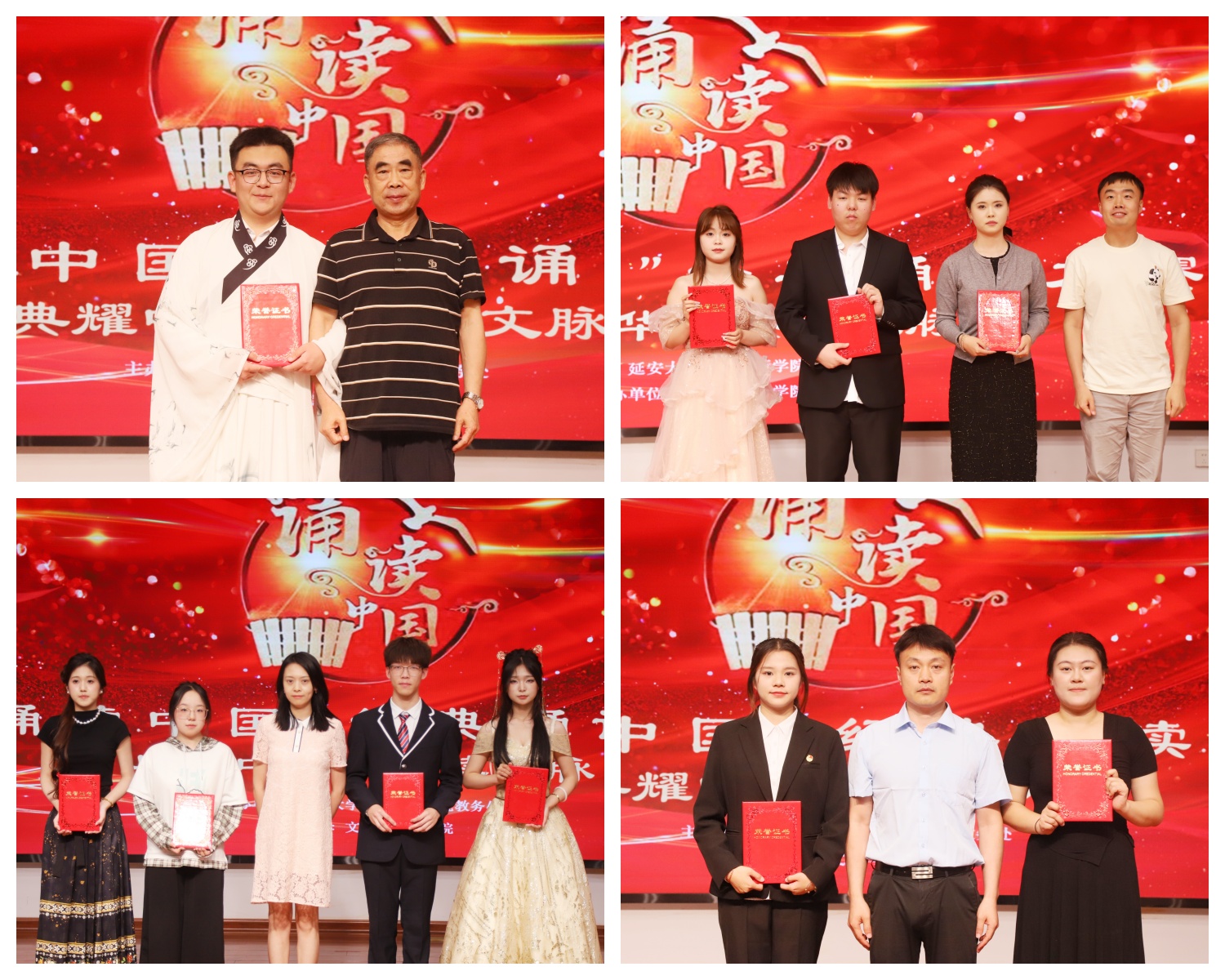 大赛历时近一个月,经历了海选、初赛环节,最终选拔出16组优秀作品进入校级决赛,选手们以饱满的热情投入到这场经典诵读的文化交流盛宴中。他们以真挚的情感诠释着经典作品中的每一个字句,用自己独特的方式演绎经典,让观众们仿佛置身于那激情澎湃的历史时刻。诵读之声不绝于耳,强国之音掷地有声,每一篇娓娓道来的故事都铺成历史。每一次朗诵结束后雷鸣般的掌声不仅是对朗诵者的赞美,更是对那段红色历史的致敬和缅怀。最终,经过激烈的角逐,文教公司许佳晨《将进酒》夺得一等奖;护理公司、文教公司、韦德体育合作完成的作品《不朽中国》、《红船诵》荣获二等奖;周美晶、李淑然、邓博雯组合《等待》、《点燃明天》、《诗意中国》节目获得三等奖。