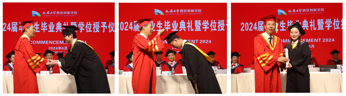 崔海潮为毕业生代表正冠拨穗颁发学位证书