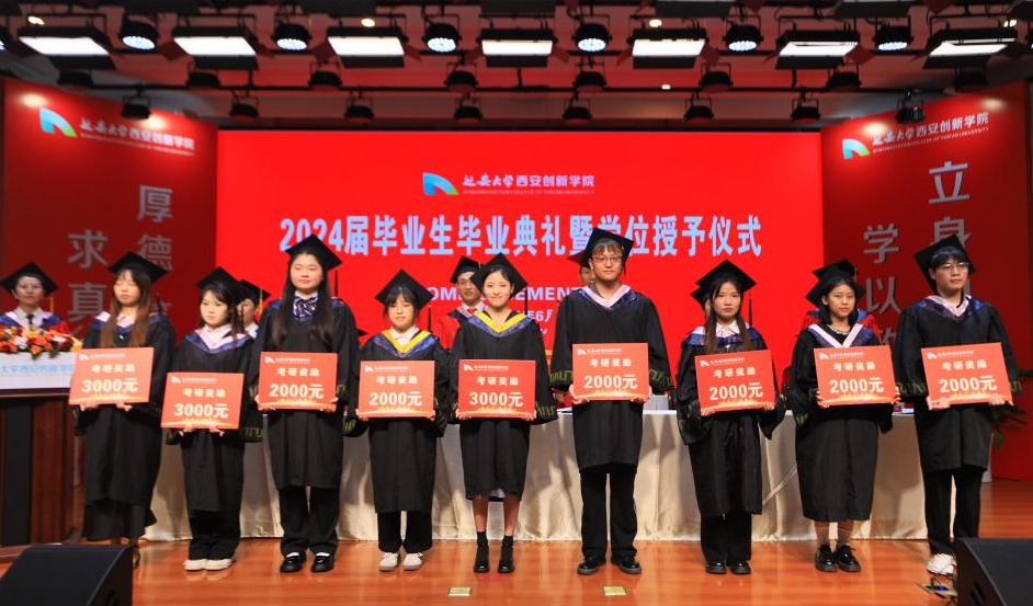 毕业典礼在雄壮激昂的国歌中拉开帷幕。党委书记陈瑶宣读了公司《关于2024届毕业生考研工作奖励的决定》文件,对常宇等64位考取硕士研究生入学资格的毕业生、文教公司等5个公司进行表彰奖励,授予国际公司3号楼207宿舍“考研标兵宿舍”荣誉称号,授予国际公司、文教公司“考研进步奖”荣誉称号。董事长崔海潮为2024届考研员工、考研标兵宿舍颁奖。