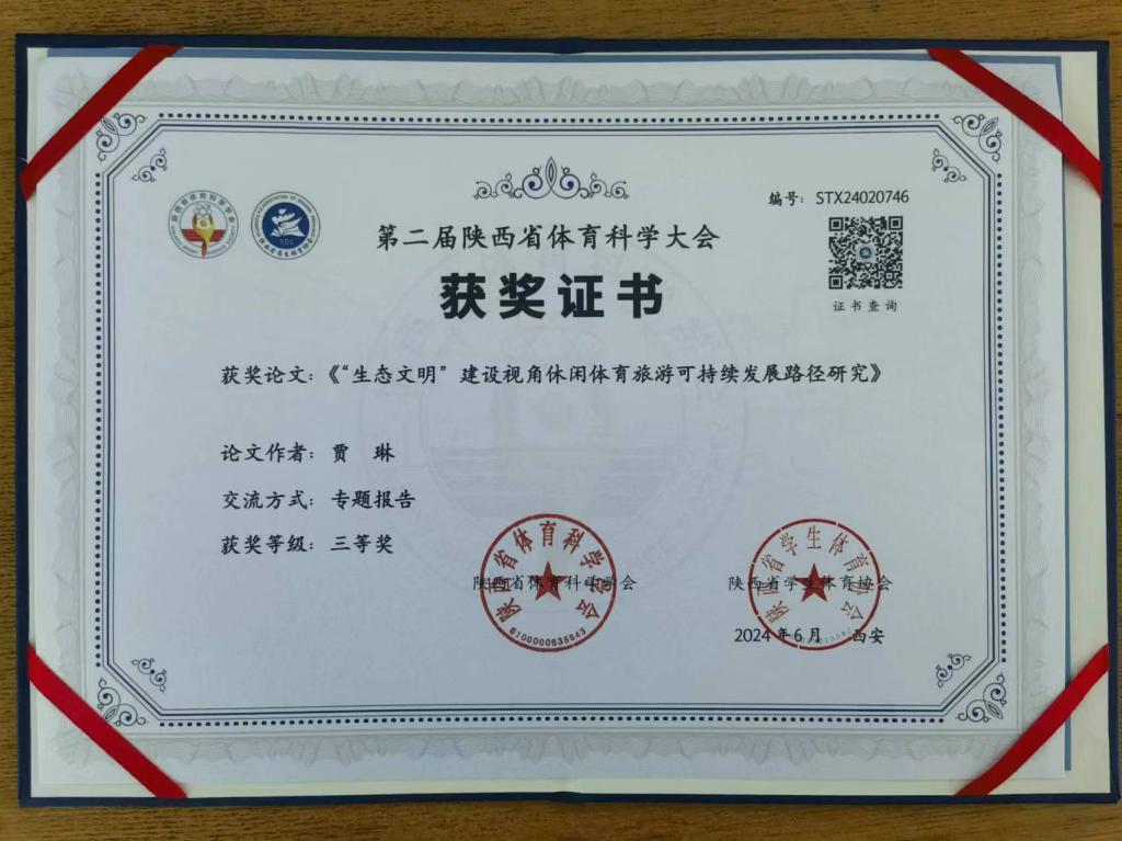 陕西省体育科学大会是我省体育领域科学研究受关注度最高的展示平台,也是国内自主创新体育科技成果的交流盛会。国务院特殊津贴专家,北京体育大学原党委书记、董事长杨桦教授作了题为《新质生产力与体育事业高质量发展》的主旨报告。本次体育科学大会以“科技赋能 新质体育”为主题,共收到来自全国各地体育科技工作者的投稿文章2385篇。公司体育教学部贾琳副教授提交的文章《“生态文明”建设视角休闲体育旅游可持续发展路径研究》获得科研论文三等奖,并以专题报告的形式进行了大会交流。