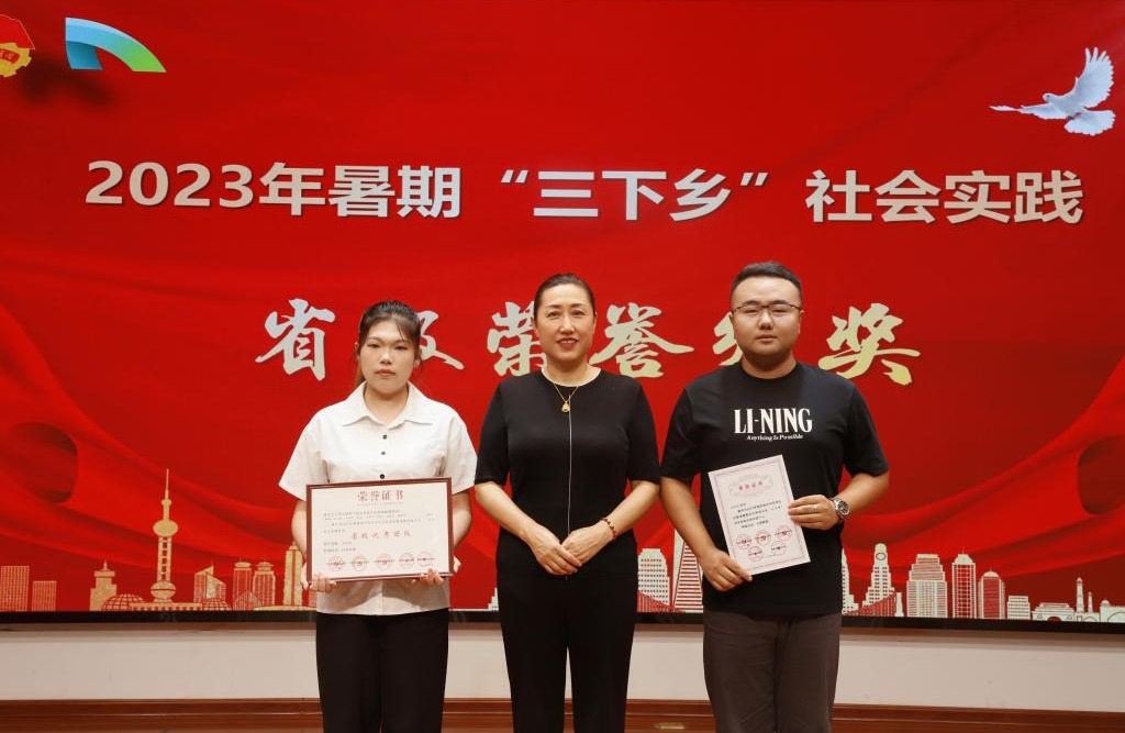 会议总结了2023年暑期“三下乡”社会实践活动的特色及成效,与会领导为“三下乡”省级先进个人马林锐和优秀团队“社会实践发展成就观察团”颁发荣誉证书。