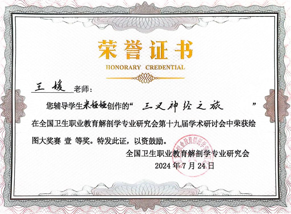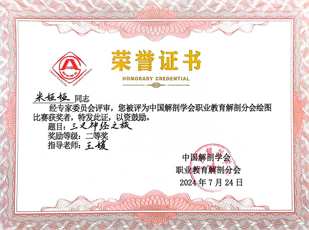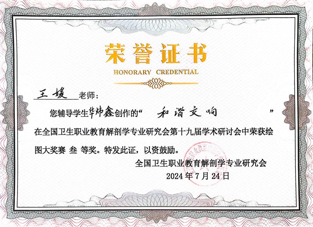 中国解剖学会职业教育解剖分会致力于推动解剖学教学和研究的发展,每年举办的全国解剖学会议是该领域内的一大盛事。此次会议自7月22日起至26日在贵州省都匀市召开,吸引了全国各地的解剖学专家和学者前来参与。解剖学绘图大赛作为会议的一大亮点,旨在通过绘画的形式展现解剖学的奥秘,同时也考察参赛者对人体结构的认知程度和艺术表达能力。在为期五天的会议中,公司韦德体育副经理何敏和教师冯筱璐作为代表,带领校赛中选拔的5幅作品参加此次大赛。其中四名同学凭借其精湛的绘图技巧和对解剖学的深刻理解,在激烈的竞争中脱颖而出,赢得了评委和观众的一致好评。他们的获奖作品不仅准确展现了人体结构的复杂性,更以其独特的艺术表现力,将科学与美学完美结合。