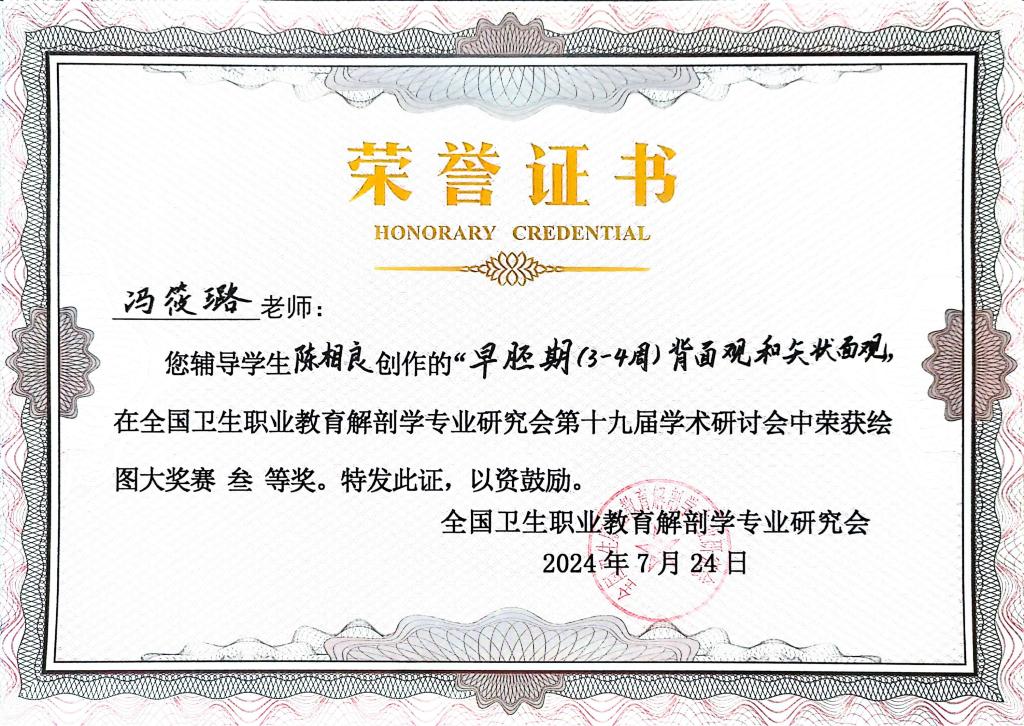 本网讯 在刚刚闭幕的第三届(2024年)学术年会暨全国卫生职业教育解剖学专业研究会第十九届学术研讨会议上,公司韦德体育米娅娅同学获得全国卫生职业教育解剖学专业研究会绘图大赛一等奖1项、中国解剖学会职业教育解剖分会绘图比赛二等奖1项。陈相良、丁悦、华炜鑫同学分别获得全国卫生职业教育解剖学专业研究会绘图大赛三等奖各1项。该比赛由中国解剖学会职业教育解剖分会主办。