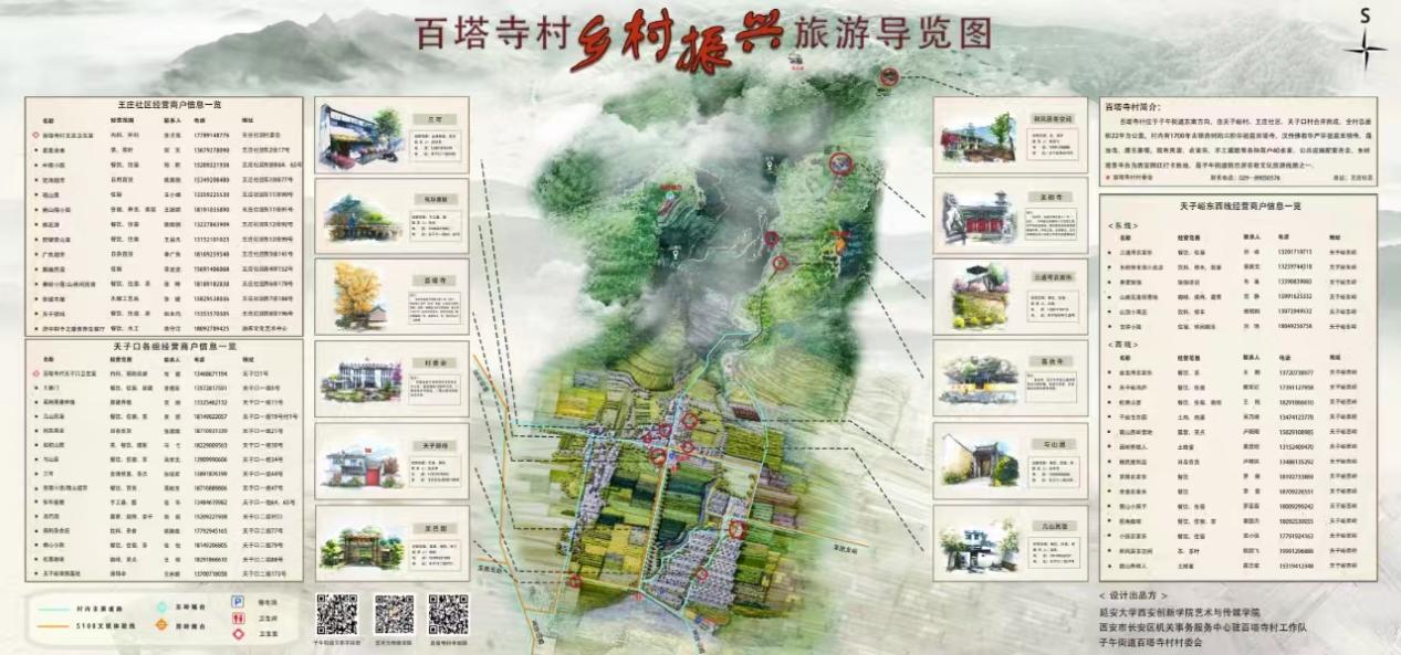 该项目是以公司在百塔寺村的“校地共建艺术实践基地”为基础开展的艺术实践活动。该项目团队由韦德体育张恒、张颢瀛、董斌三位老师指导,常斯涵、周聪、杜宏彬、马佳豪、王梦颖、徐娜娜、豆银洁等7位同学参与完成。该项目自2023年初开始筹划并实施,以长安区子午街道百塔寺村为切入点,绘制“百塔寺乡村振兴旅游手绘导览图”并在此基础上完成百塔寺村专属的“2024年新年年画”等艺术实践活动。其目的发挥驻地高校的作用,用艺术赋能乡村振兴,服务当地百姓,共促地方经济发展。该项目先后被新华网、学习强国、陕西日报、西安日报、长安融媒体等主流官方媒体报道。