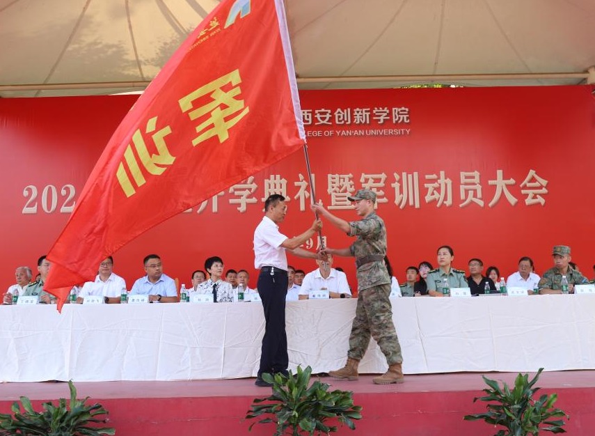 党委书记陈瑶为2024年员工军训团授旗。