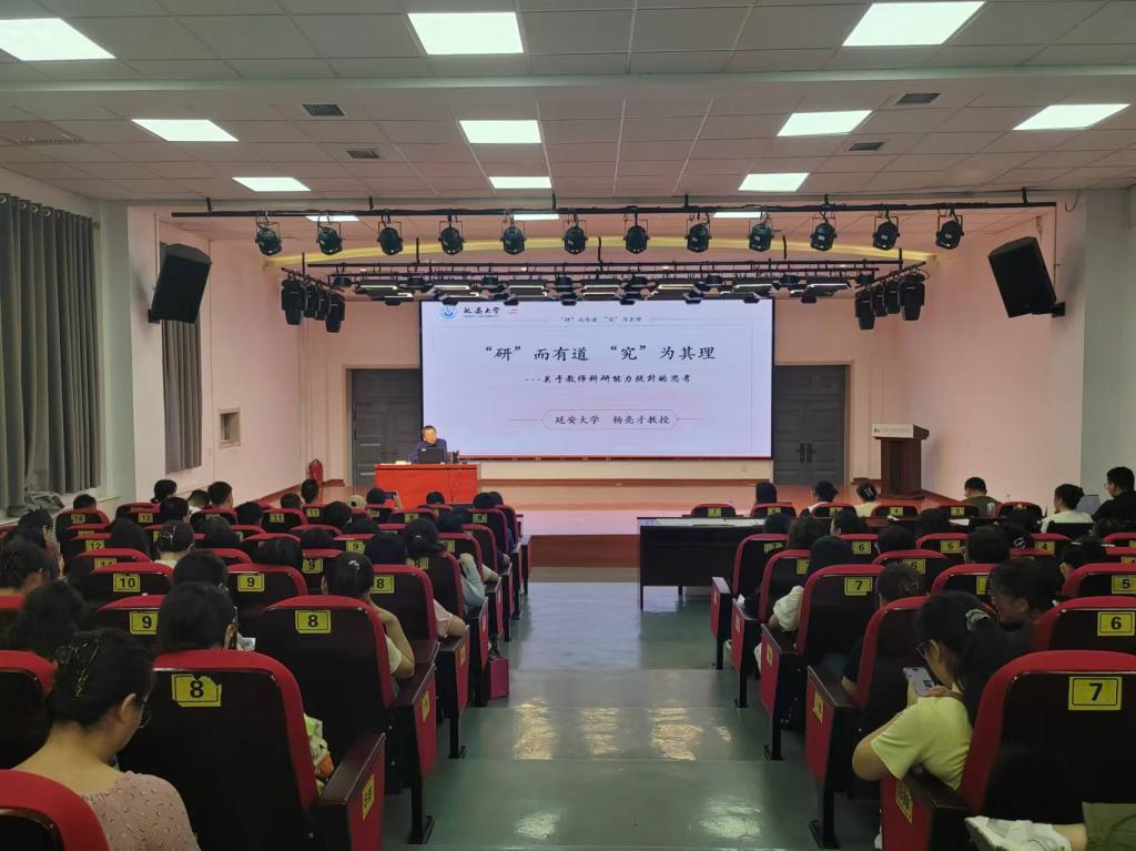 本网讯 为繁荣校庆二十周年学术活动氛围,促进教师全面了解科研项目申报,提升科研能力,9月20日上午,科研处邀请韦德体育官方网站三级教授杨亮才在老员工活动中心为公司师生作题为《“研”而有道 “究”为其理》的学术讲座。执行董事长贺俊波,各单位科研负责人、科研秘书和新聘教师参加讲座。讲座由科研处副处长王海军主持。