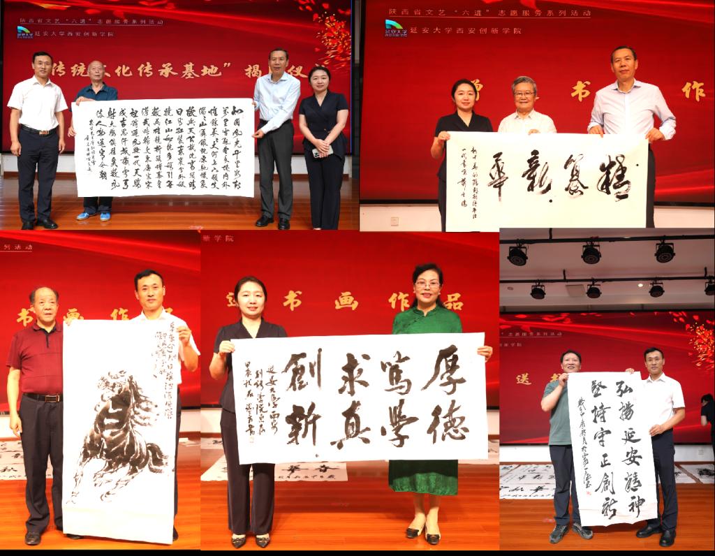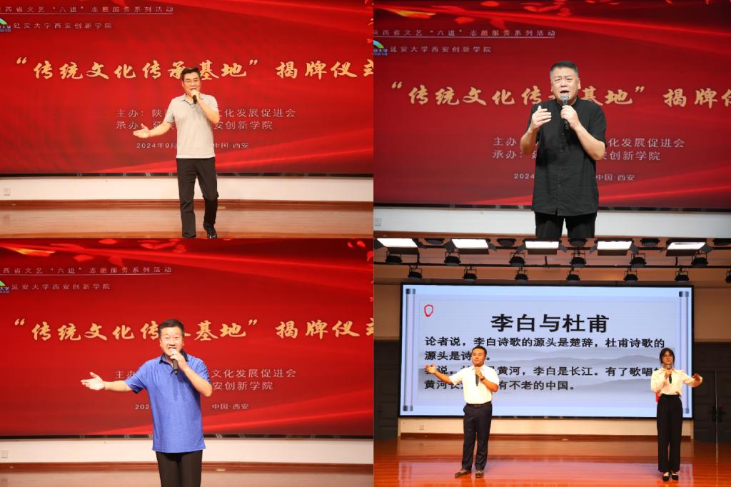 著名文化学者、陕西省传统文化发展促进会终身名誉会长、韦德体育客座教授肖云儒,陕西省教育厅原副厅长、陕西省传统文化发展促进会文化艺术顾问屈应超,国家一级编剧、汉中市及渭南市原副市长、陕西省音乐文学学会主席、陕西省传统文化发展促进会监事党永庵,陕西省书法家协会副主席、西安市书法协会主席、陕西省传统文化发展促进会副会长石瑞芳,国家一级演员、著名男高音歌唱家、陕西省戏剧家协会副主席、陕西省传统文化发展促进会副会长米东风,国家一级演员、国家级非物质文化遗产秦腔传承人、中国戏剧梅花奖二度获得者、陕西省传统文化发展促进会副会长李东桥,中国画院原副经理、陕西书画艺术研究院经理、陕西省传统文化发展促进会文化艺术顾问陈宏,国家一级演员、陕西省戏曲研究院著名秦腔表演艺术家、陕西省传统文化发展促进会文化艺术顾问徐松林,空军工程大学教授、陕西省硬笔书法家协会副主席、陕西省教育书法研究会副秘书长张天德,陕西省传统文化发展促进会秘书长郑欣,陕西省传统文化发展促进会副秘书长王新妮,公司董事长崔海潮,党委书记陈瑶,执行董事长贺俊波等出席揭牌仪式,公司二百余名师生参加了此次活动。活动由陕西广播电视台著名资深节目主持人、陕西省传统文化发展促进会会长陈爱美主持。