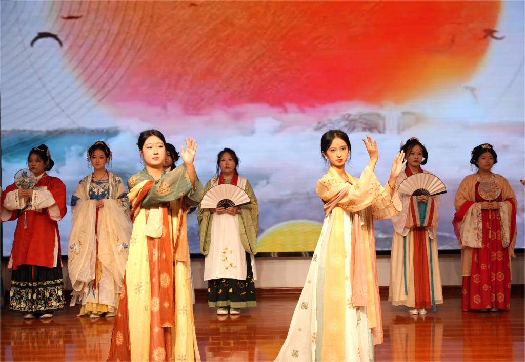 揭牌仪式正式开始前,公司老员工艺术团带来舞蹈表演《唐宫夜宴》,将大唐盛世的传统文化形象完美地呈现在舞台上,现场嘉宾和师生在欣赏“鬓云欲度香腮雪,衣香袂影是盛唐”风采的同时感受到中华厚重的历史和文化。