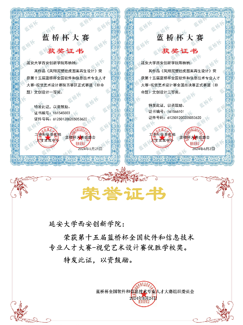 部分获奖证书及作品展示