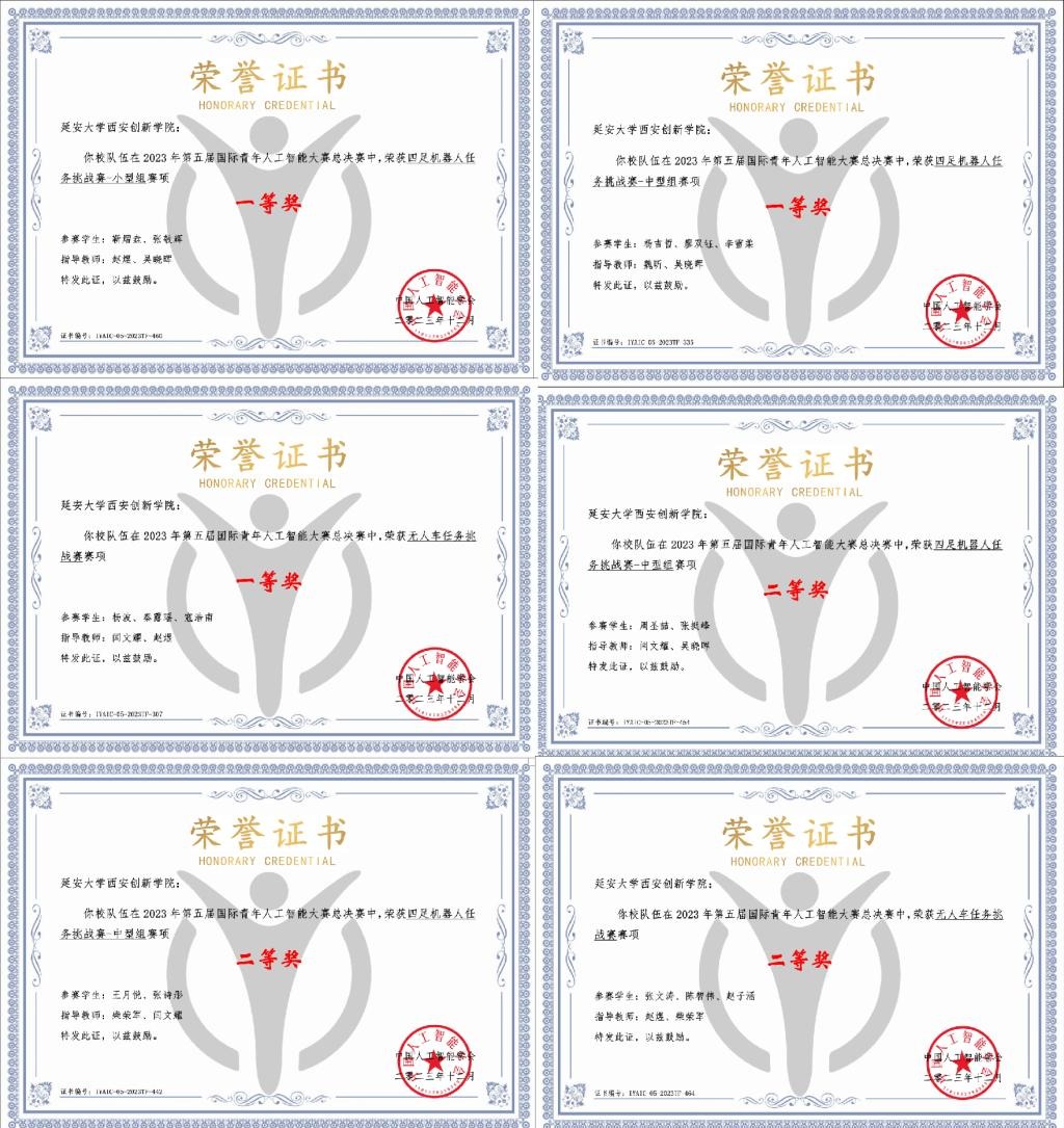 3.第二十六届中国机器人及人工智能大赛荣获全国一等奖1项,全国二等奖5项,全国三等奖4项,全国优秀奖3项。