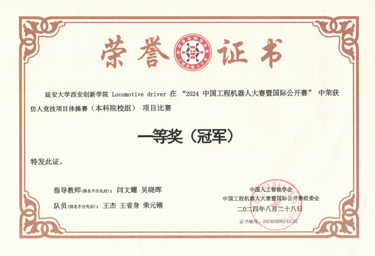 20.2024中国机器人大赛暨国际公开赛荣获全国一等奖1项。