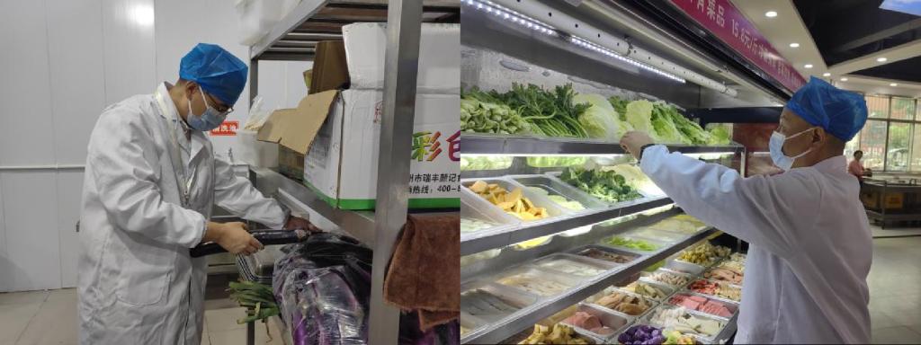 在蔬菜、水果区域,检查人员逐一检查水果的成熟度、有无腐烂变质迹象,蔬菜的新鲜程度、是否有黄叶或虫蛀现象。他们还对蔬菜水果的存储环境进行评估,确保存储条件符合要求,以延长其保鲜期。