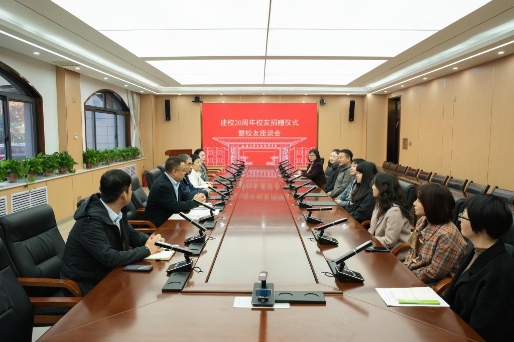 座谈会上,拓欣为员工颁发了捐赠证书。桑伍福代表公司向员工对母校深深的牵挂和大力支持表示感谢。随后,他向大家介绍了公司近年来在人才培养、团队建设、科学研究等方面取得的成就以及新校区建设情况,并期待广大员工继续与母校同心同向、携手奋进。