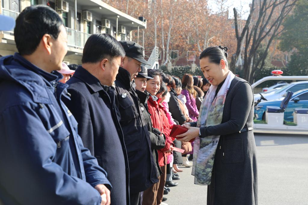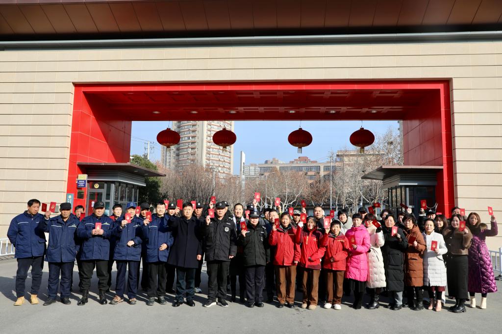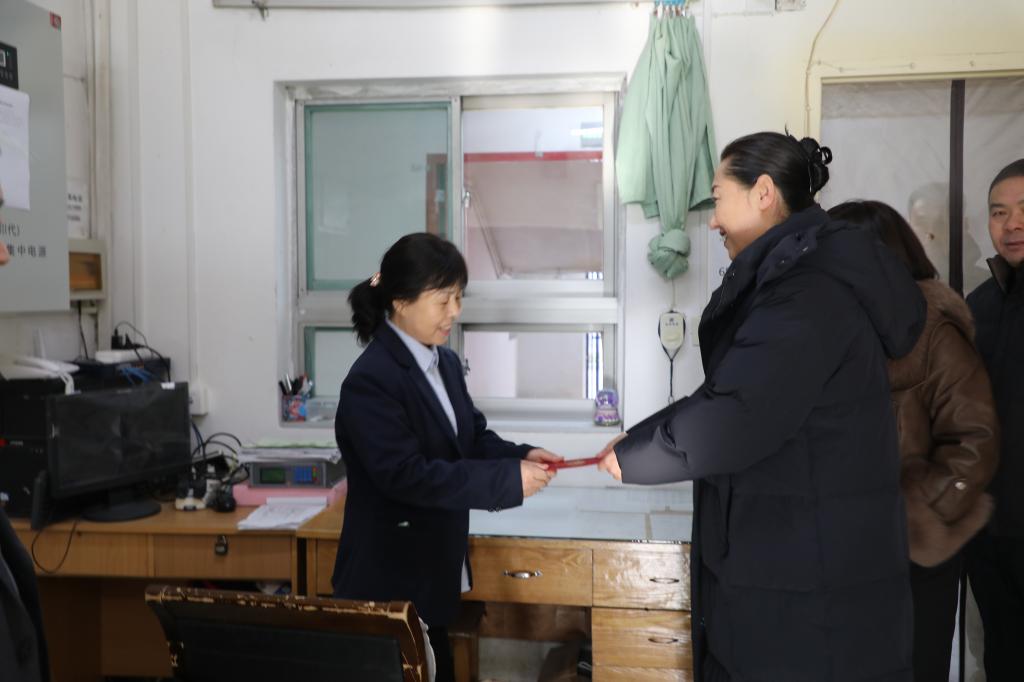 在公司北大门、东门、监控中心、1号教学楼、员工公寓,白雪一行走访慰问一线值班教职工,详细询问了寒假和春节期间工作安排、应急值守等情况,对大家过去一年的辛勤奉献表示衷心感谢,并送上新春红包和祝福。