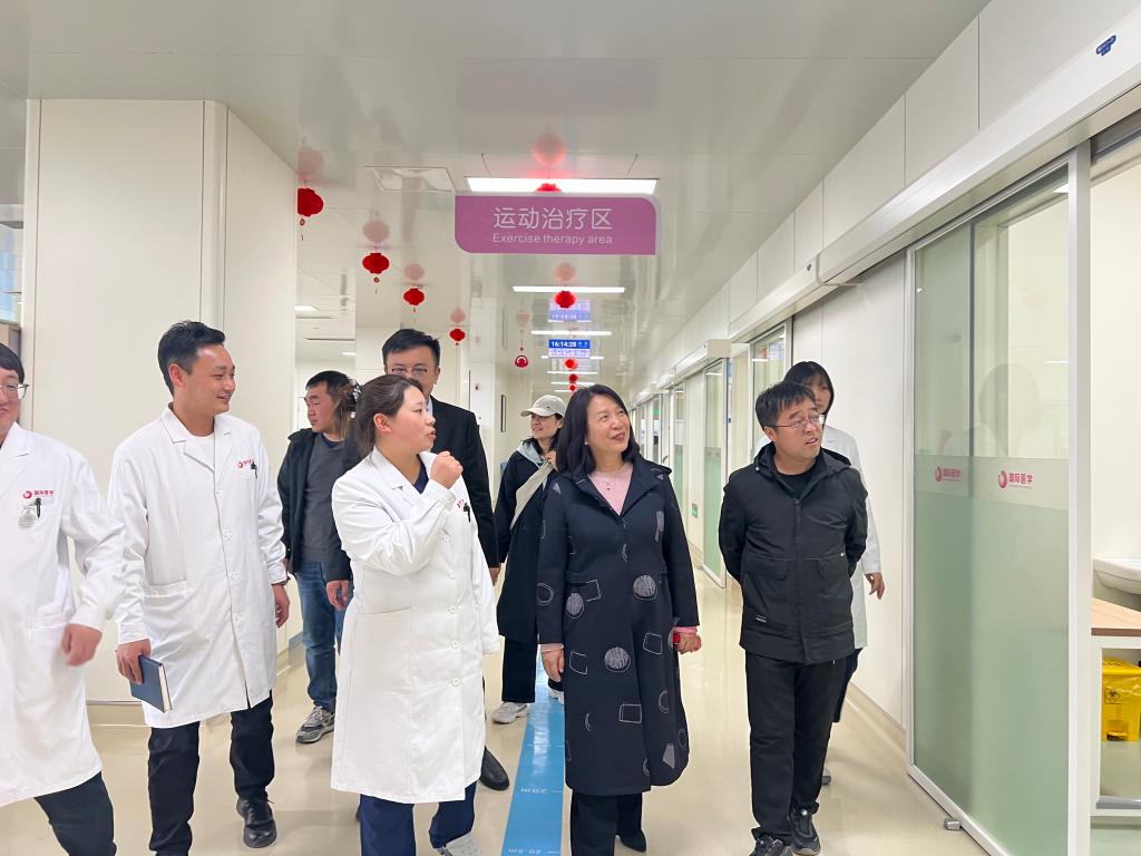 会后,侯延丽一行实地参观了康复科门诊、住院部、综合康复治疗区等区域。康复科主任李宝福详细介绍了康复医疗设备及功能使用。通过深入一线的实地考察,侯延丽一行全面了解了科室的先进医疗设施、严谨的工作氛围以及对康复人才的实际岗位需求和职业能力要求,为韦德体育明确教学改革方向、优化人才培养方案提供了宝贵的实践参考。