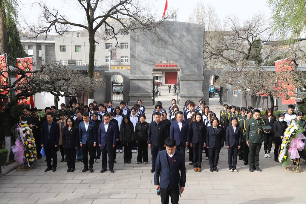 上午9时,在庄严肃穆的杨虎城将军陵园烈士纪念碑前,公司百名师生整齐列队,脱帽肃立,集体默哀1分钟,表达深切哀悼。商公司党总支副书记冉亚周带领大家学习革命烈士的英雄事迹,重温红色故事,感悟信念如磐,表达深切缅怀。随后,国旗护卫队员工护送花篮,各公司党总支副书记敬献花篮至烈士纪念碑前。党委副书记杭涛、校团委副书记马林锐缓步行至花篮前,俯身悉心整理缎带,扶正挽联。