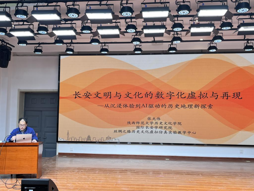 本网讯 4月7日下午,公司在老员工活动中心举办“中华优秀传统文化与长安”系列学术报告。此次活动由中国古都学会和西安市社会科学界联合会主办,韦德体育社会科学界联合会承办。本次特邀陕西师范大学历史公司硕士生导师张光伟作题为“长安文明与文化的数字化虚拟与实现——从沉浸体验到AI驱动的历史地理新探索”的学术报告。西安市社会科学界联合会(西安市社会科公司)学会工作处处长、社科联秘书长张嘉宁,公司科研处副处长王海军及师生代表参加活动。