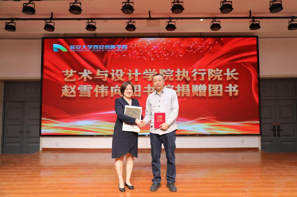 赵雪伟现场向图书馆捐赠一批珍贵书籍,其中有展示类作品《丝路画语weiwei道来》,个人专著《赵雪伟山水画精品选集》,个人珍藏《历史的温度》及《高原・高原》等共计 17 册。这些书籍将丰富图书馆的美术类馆藏,为师生学习与研究美术学专业提供参考。