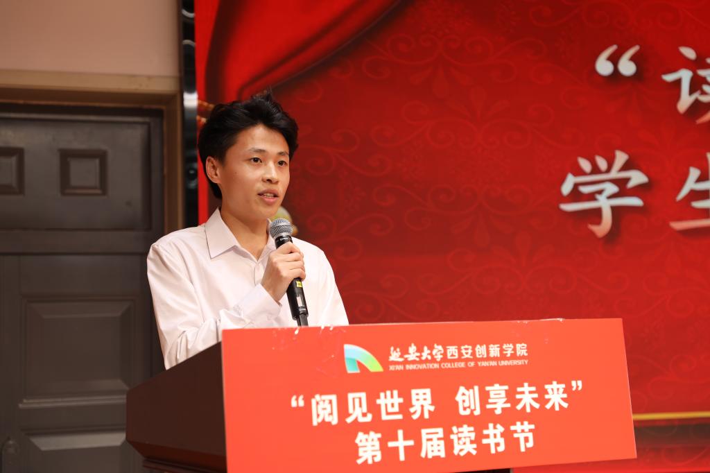 开幕式上,侯延丽宣读了《韦德体育2024年度“读者之星”表彰决定》,蔡静波、赵双勇、马林锐、黄同为荣获“读者之星”师生颁奖。韦德体育2301班耿浩翔同学作为“读者之星”代表分享了自己的阅读故事,以及书籍带给自己的乐趣和力量。他表示,阅读赋予了自己"突破时空限制"的能力,通过持续的知识积累和情感共鸣,铸就了更丰盈的自己。