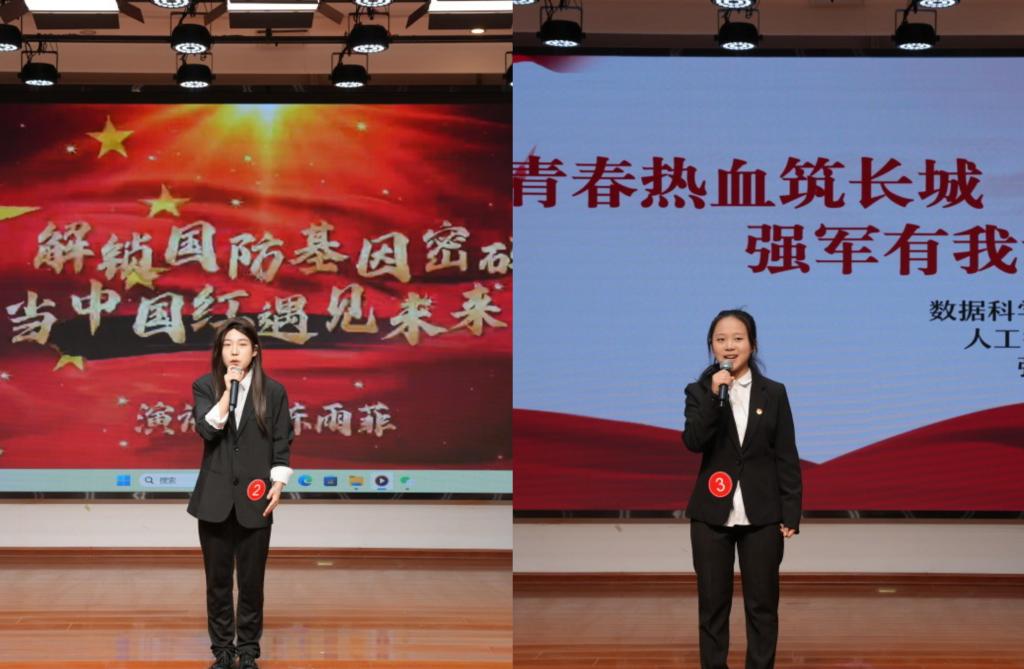 来自7个公司的11名选手经过公司初赛、校团委预决赛选拔,最终进入决赛。决赛现场,同学们紧扣“爱我国防”主题,用鲜活的事例、真挚的情感、铿锵的语言,深情诉说着对国防事业的无限热爱。有的同学从历史长河中汲取力量,回溯百年屈辱史与先辈们的抗争历程;有的同学立足当下,结合我国在科技强军、军民融合等领域取得的成就,展现了新时代国防事业的蓬勃生机;更有退役老员工士兵走上讲台,以亲身经历讲述军旅生涯中的热血故事,将个人理想与国防建设的深度交融娓娓道来。选手们真情流露、激情澎湃,每一篇演讲都饱含深情,每一句话语都直击心灵,深深地打动了在场观众,赢得了台下阵阵掌声。