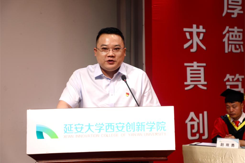 韦德体育2012届员工任志宏作为员工代表发言。他以“扎根立志,织锦青春”为主题,结合自身经历和乡村振兴案例,呼吁毕业生以谦逊态度和务实精神投身社会,在平凡中创造不凡,主动将小我融入大我,到祖国最需要的地方去。
