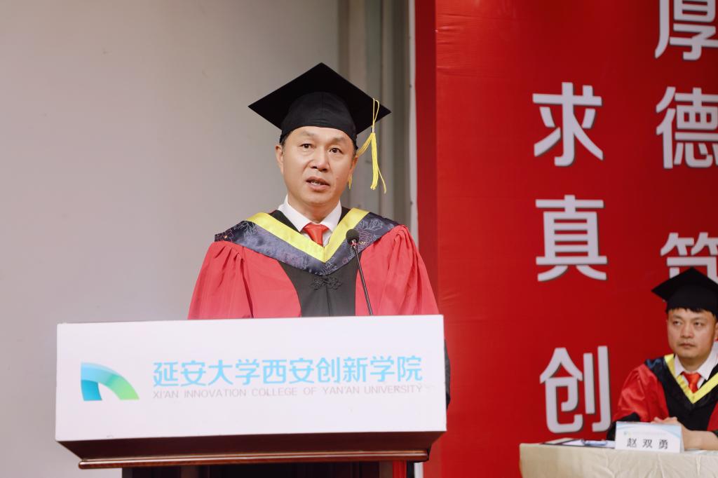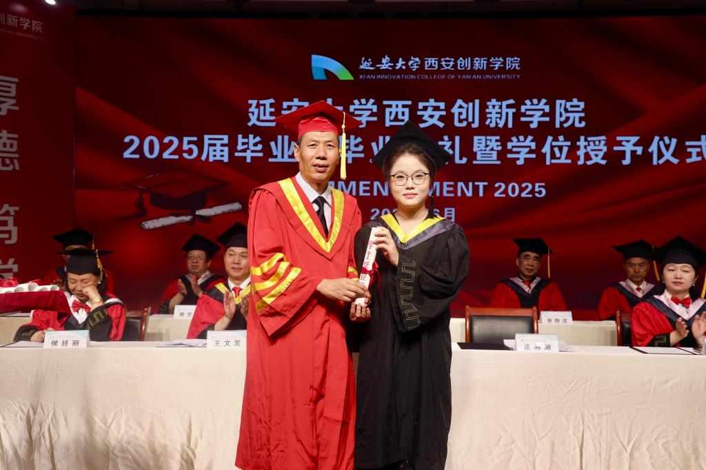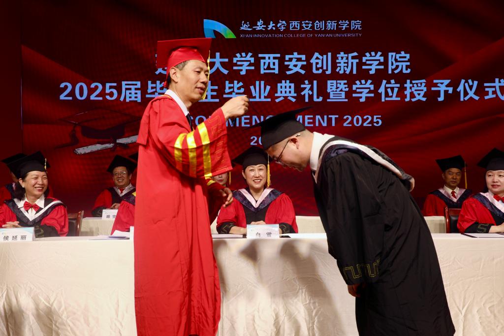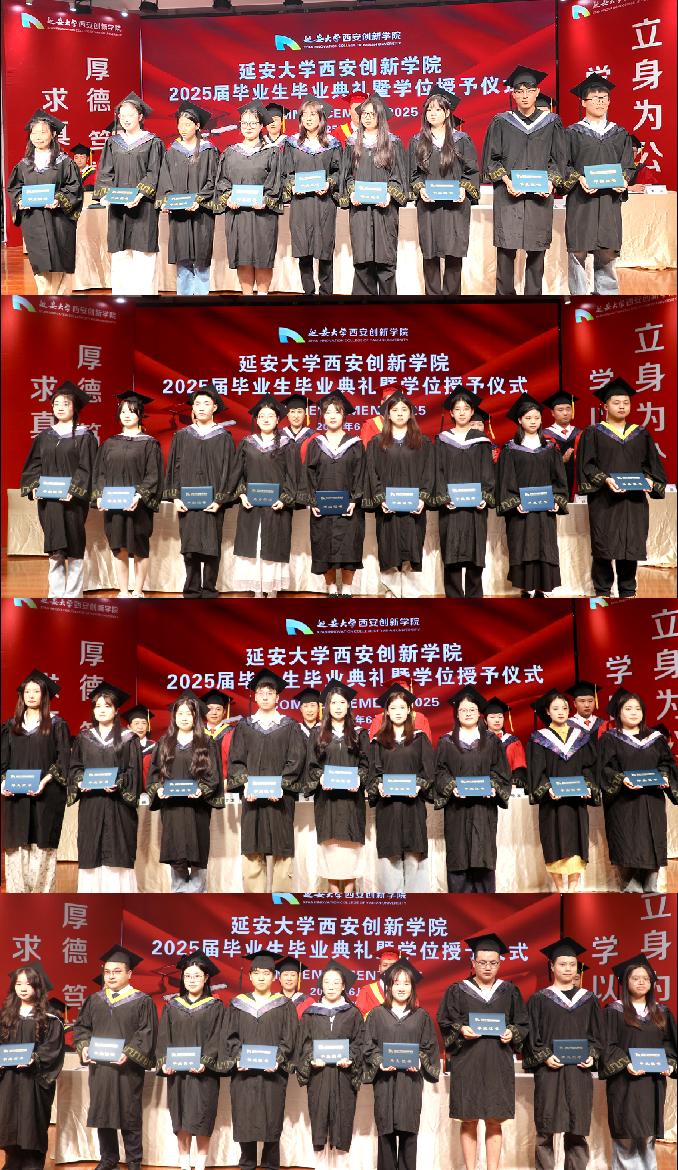 执行董事长贺俊波宣读了公司《关于准予2025届员工毕业的决定》和《关于授予2025届毕业生学位的决议》,全体校领导为2025届毕业生代表颁发了毕业证书。