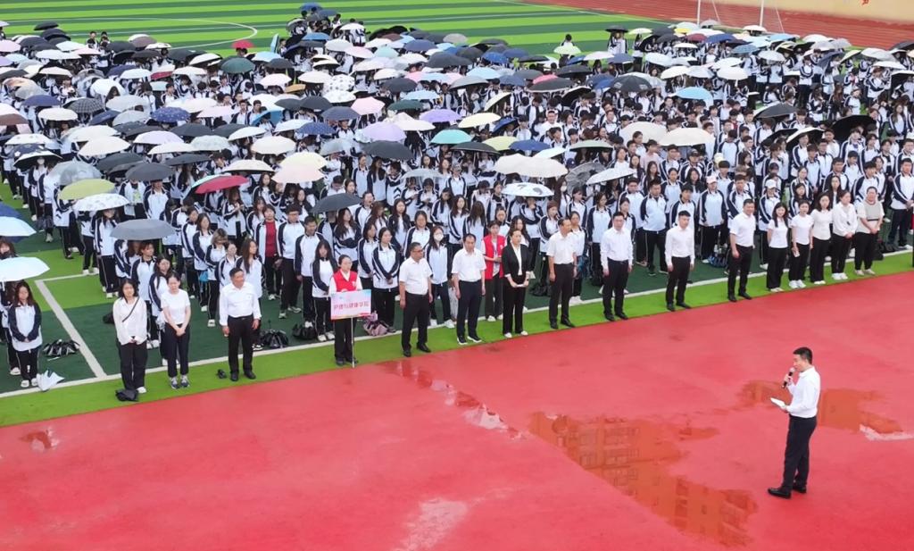 活动在庄严的升旗仪式中拉开帷幕。国旗护卫队迈着整齐有力的步伐护送国旗走向升旗台。随着激昂的国歌声响起,五星红旗缓缓升起,全体师生庄严肃立,面向国旗行注目礼,高唱国歌,用嘹亮的歌声表达对党的无限忠诚和热爱。