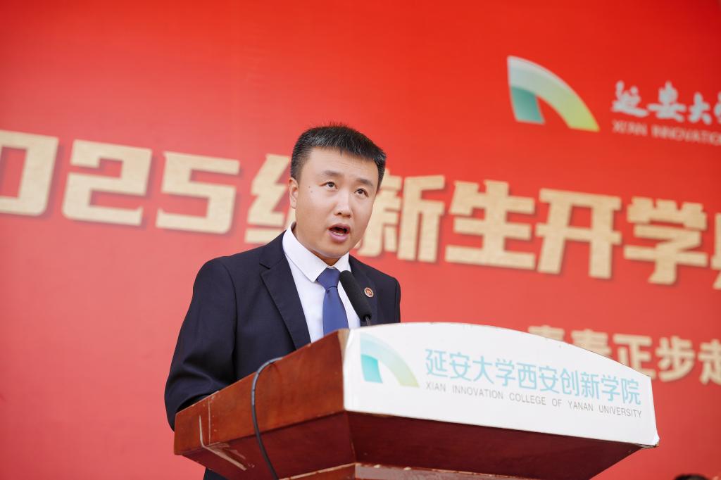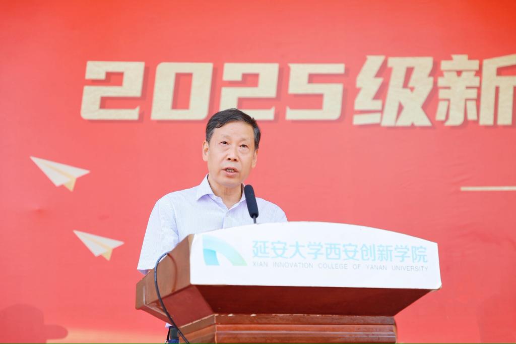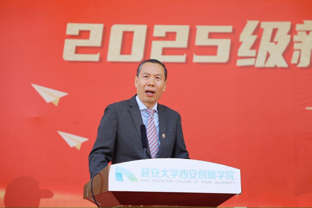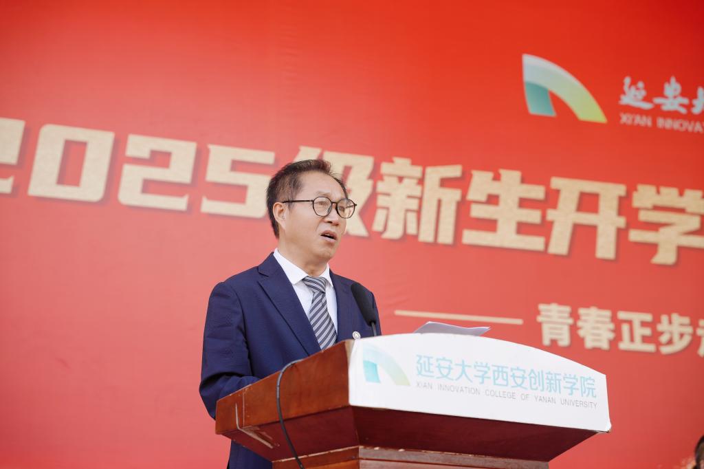 他特别提到位于西安经济技术开发区渭北新城的新校区,指出其区位优势与发展潜力,并详细介绍了“延大创新西部科技湾项目”的规划与建设进展,承诺为同学们提供更优良的学习与生活环境。