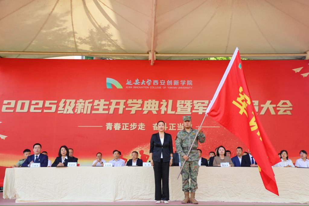 党委书记白雪为2025年员工军训团授旗。