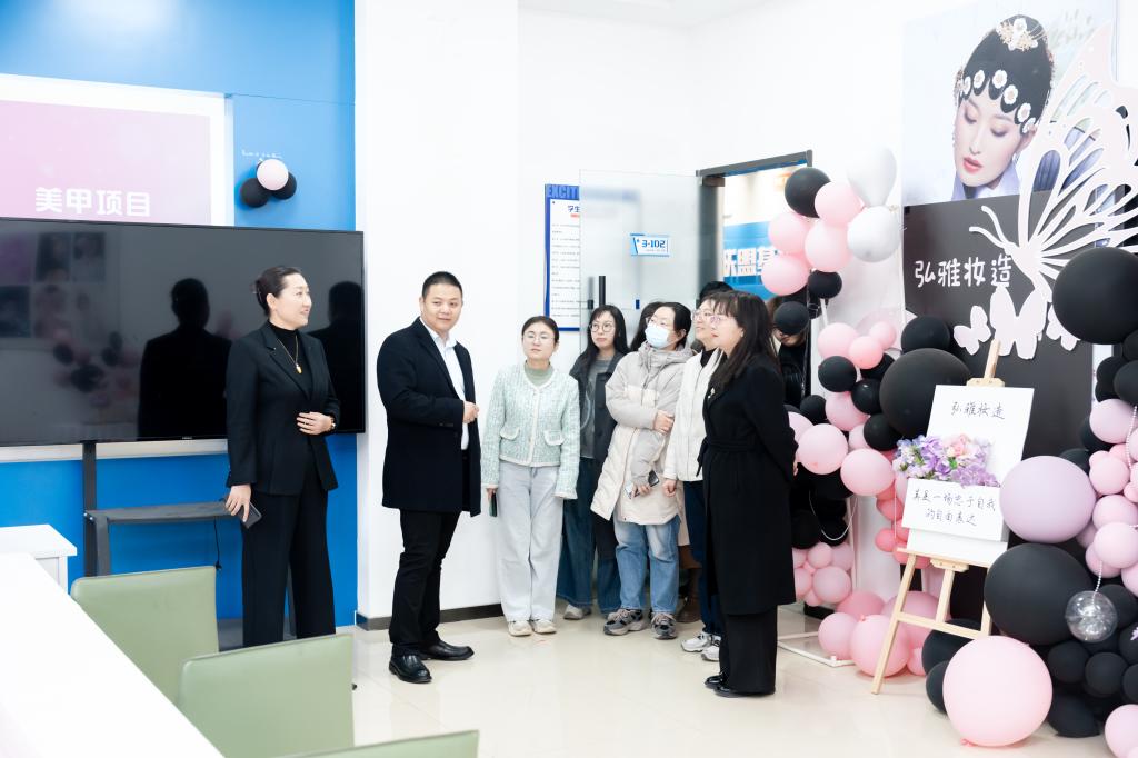 西安弘雅公司董事长肖永定对白雪一行的到来表示热烈欢迎,并陪同参观了公司教室、食堂、宿舍、汉服馆、直播场地及各职能部门。