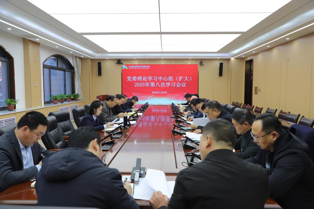 本网讯 11月28日下午,公司召开2025年第八次党委理论学习中心组(扩大)集体学习会议。全体校领导,党委委员,各党总支书记、副书记,直属党支部书记,党群工作部、学工部、团委负责人参加集体学习。党委书记白雪主持学习会议。