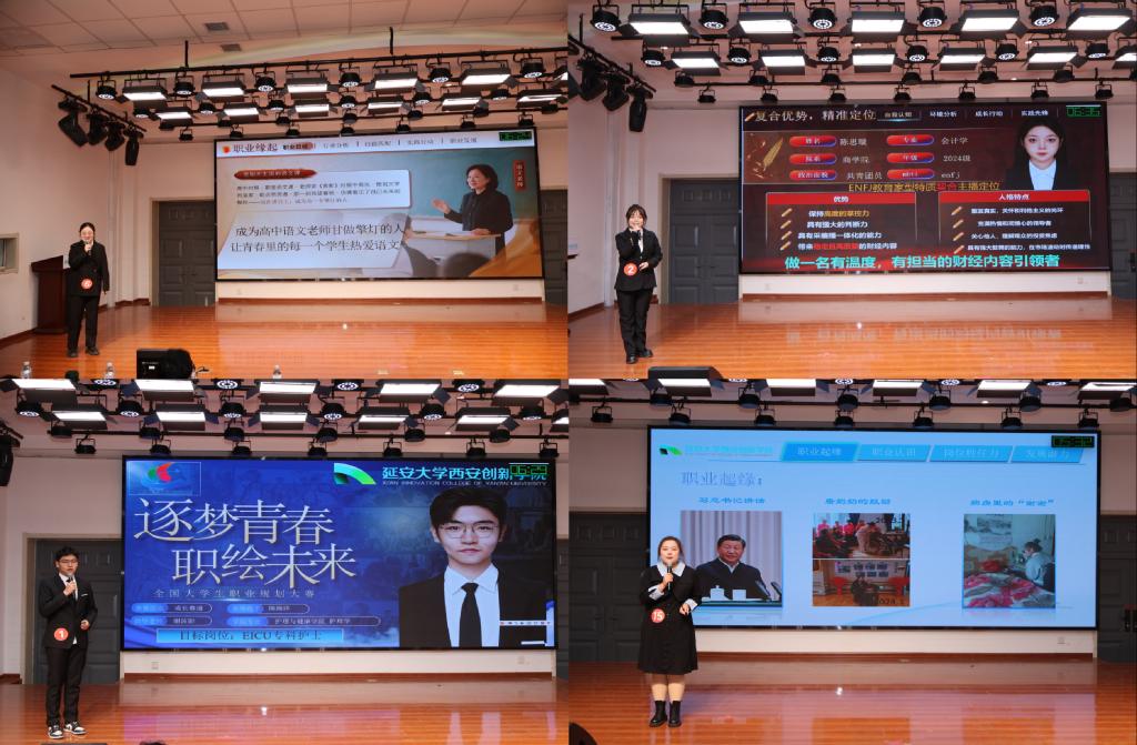 决赛现场,选手们依托专业,国家政策,结合赛道设置,围绕职业目标、学习实践行动、自我评估和反思、岗位胜任力、发展潜力等方面进行陈述,清晰展示了从短期学习积累到长期职业发展的科学规划,他们或立志扎根基层到乡村传道授业,或聚焦科技发展回归故里服务村民铸牢网络安全防线,或投身医疗救治事业贡献青春力量,或积极探索数智化时代金融知识的传播新途径,充分展示了新时代青年将“小我”融入“大我”的责任意识与青春风采。评委们从行业发展、职业定位、专业素养、前景发展等角度对选手表现进行了专业性点评和针对性指导。
