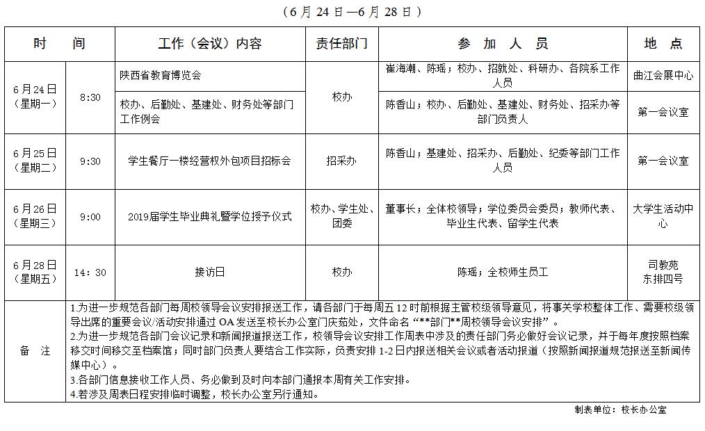 韦德体育2018-2019学年第二学期第18周校领导会议安排