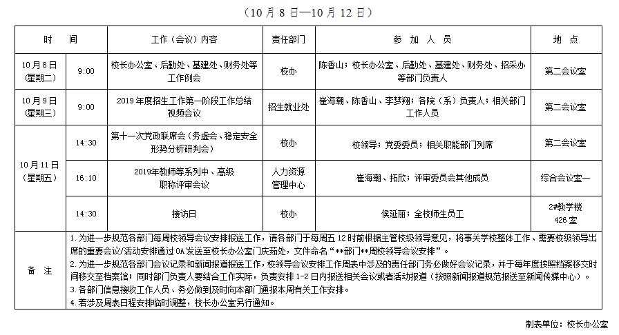 韦德体育2019-2020学年第一学期第6周校领导会议安排表