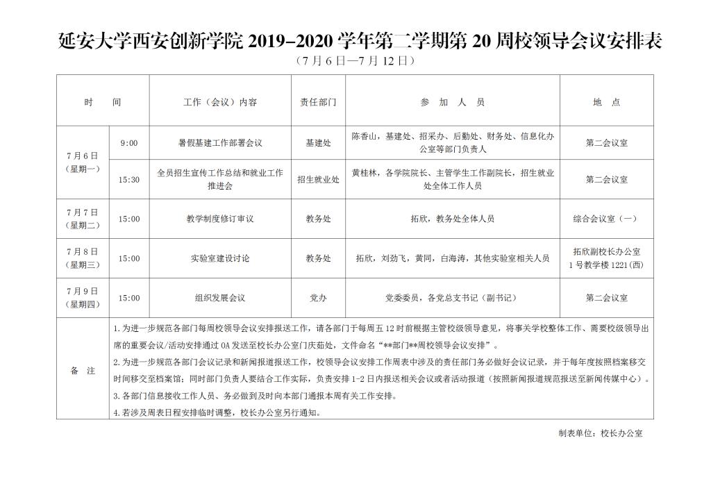 韦德体育2019-2020学年第二学期第20周校领导会议安排表