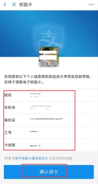 点击立即领卡—确认个人信息无误后点击确认领卡