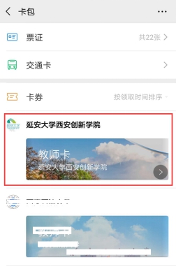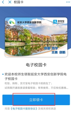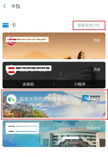 微信或支付宝卡包中进入个人已领取的电子校园卡
