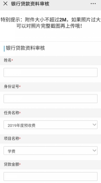 贷款证明资料提交:有助学贷款的员工,如实填写相应信息,上传包含贷款金额的证明材料照片,经审核验证,调整金额后再从财务处收费入口处缴纳调整后金额费用。上传银行贷款证明附件时,从文件入口处上传提前编辑剪贴好的不大于2M的图片,提前检查图片清晰度和完整度,请勿重复提交。资料提交成功36小时之后,登录查看缴费金额是否变更,检查无误后进行缴费。