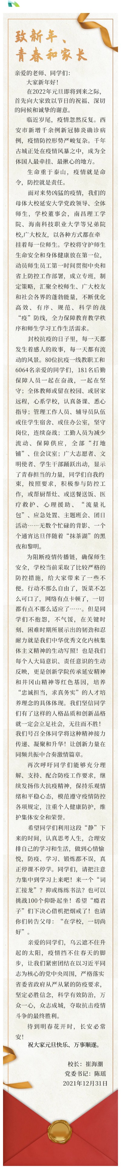 致新年、青春和家长