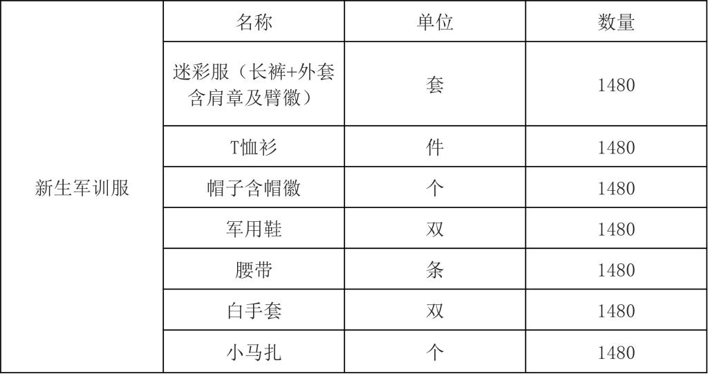 2.项目概况:2023级新生军训服采购,预计数量1480套,采购内容如下表: