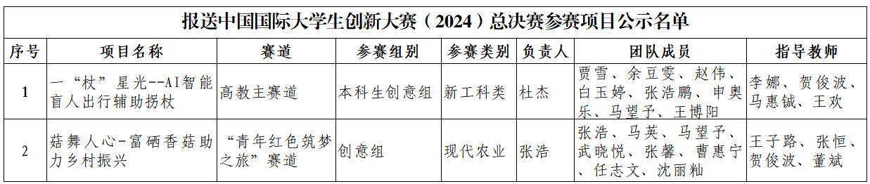 2024年8月中国国际老员工创新大赛(2024)省级复赛已结束,公司2个项目荣获省级金奖,现拟将2个省级金奖项目报送中国国际老员工创新大赛(2024)总决赛。为确保大赛的公平、公正、公开,增强社会监督力度,现对报送2024年总决赛的参赛项目进行公示。公示时间为:2024年9月11日—2024年9月14日,在此期间,如对项目成员、指导教师有异议的可向创新创业公司反馈。
