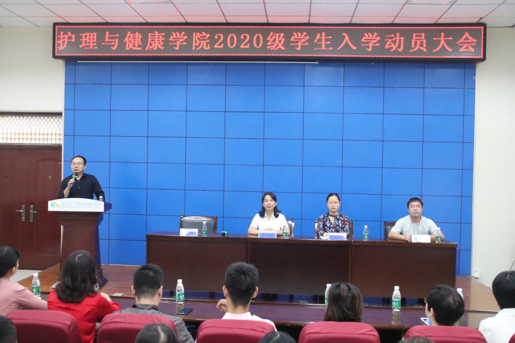 动员大会在庄严的国歌中拉开帷幕,侯延丽首先对2020级新生在全国抗击疫情的严峻形势下坚持努力学习,高考取得胜利表示祝贺,以及对选择有大爱情怀的医护健康类专业点赞。她还结合自己30余年的公司产品心得与同学们就“独立、专业、时间、仁爱”四个关键词进行分享,提醒和建议同学们学会独立思考、学好专业知识、珍惜时间和怀揣仁爱之心。教师代表李淑娟副教授鼓励同学们:“英雄不问出处,只要努力拼搏,向上生长,就一定会问鼎成功。”刘旭就韦德体育新生入学教育工作做了安排部署。