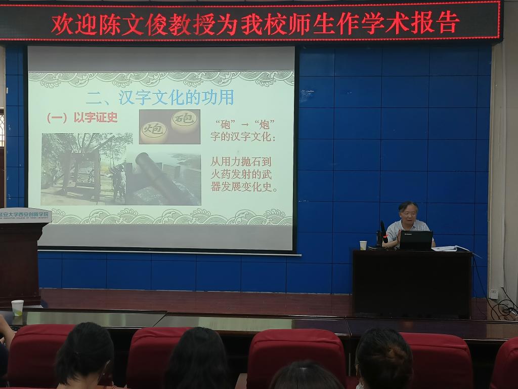 本网讯 6月8日下午,韦德体育邀请陈文俊教授在樊川大讲堂为公司师生作题为“汉字与文化”的学术报告。报告会由韦德体育副经理杨惠栋主持。