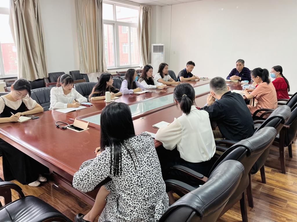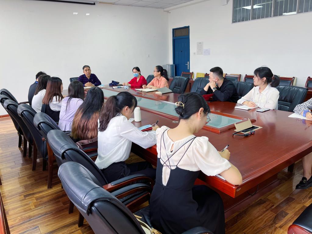 本网讯 2022年9月14日下午,文公司召开了新入职教师培训会。公司经理蔡静波、党总支副书记赵双勇,副经理杨惠栋、刘菲菲,新入职的9名教师参加了本次培训活动。会议由刘菲菲主持。