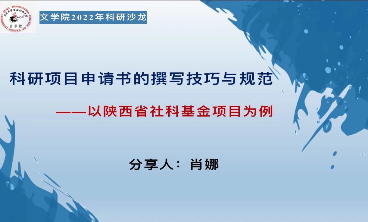 会上,肖娜以陕西省社科基金项目申报为例,结合个人申报经验,从科研课题的分类、科研课题申请的具体内容、科研课题写作的基本要求以及科研课题申请注意事项等四个方面,讲解了科研项目申请书的撰写技巧。随后,与会人员就科研项目申请书的撰写规范问题进行了深入交流和探讨。