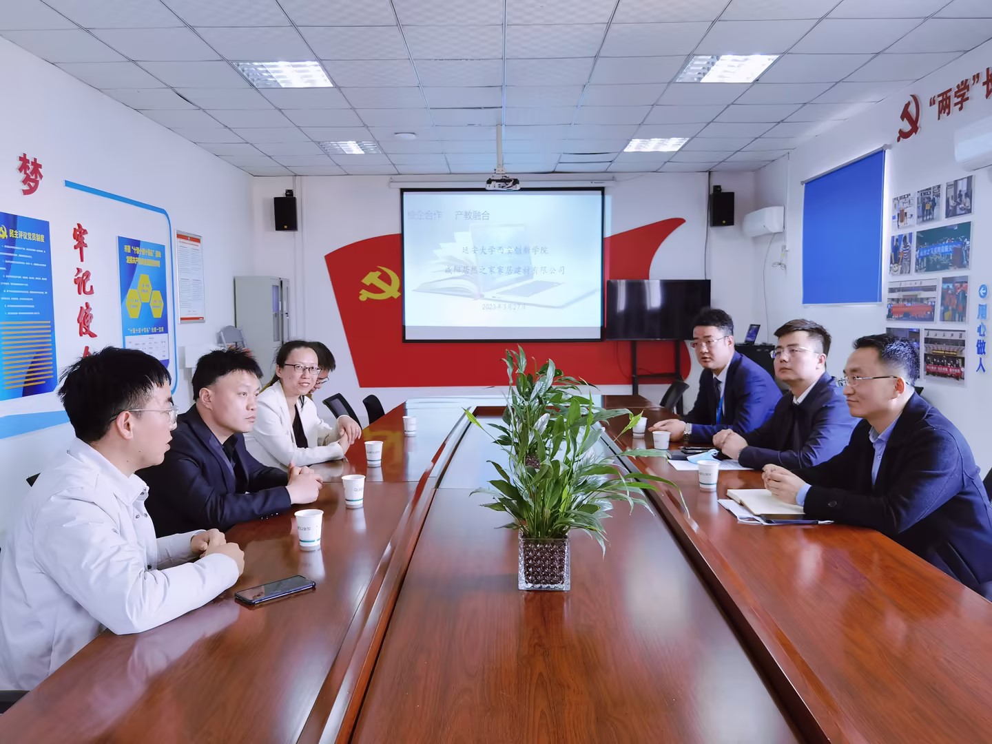 咸阳居然之家总经理石浩学、总经理助理张赵宏及办公室主任赵龙出席座谈交流会。石浩学对公司的走访交流表示热烈欢迎,并介绍了居然之家的企业发展历程、发展规划、企业文化、人才需求方向等情况。赵双勇介绍了公司的公司产品、人才培养、实习就业和专业特长等情况,双方还就校企合作的前景展开了深入的交流。
