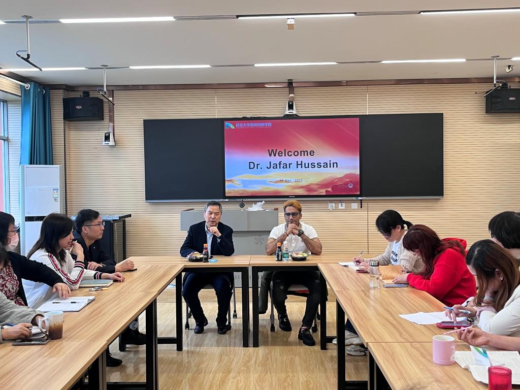 本网讯5月29日下午,国际公司特邀南昌理工公司副教授Jafar Hussain博士在1503举办跨文化学术交流沙龙活动。科研处副处长王海军及国际公司师生代表参加本次活动。活动由国际公司经理陈德主持。